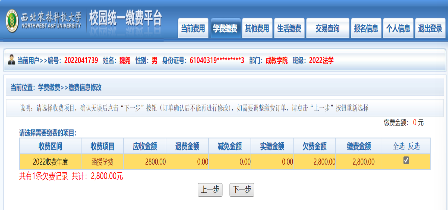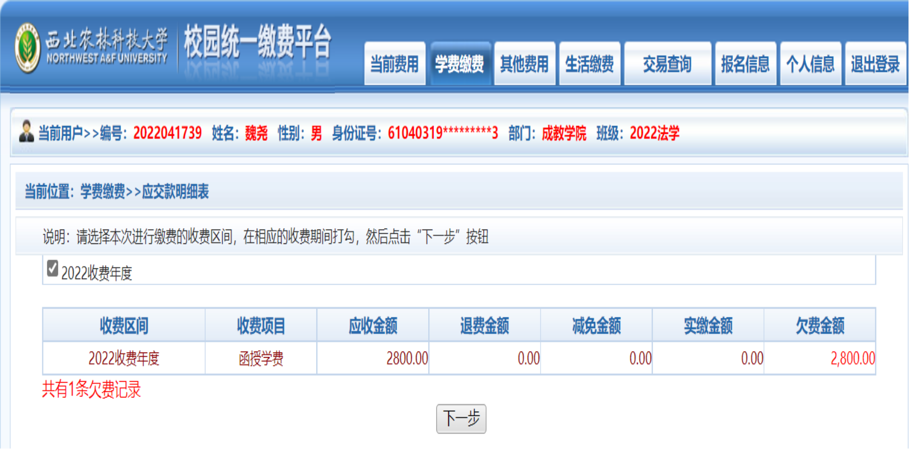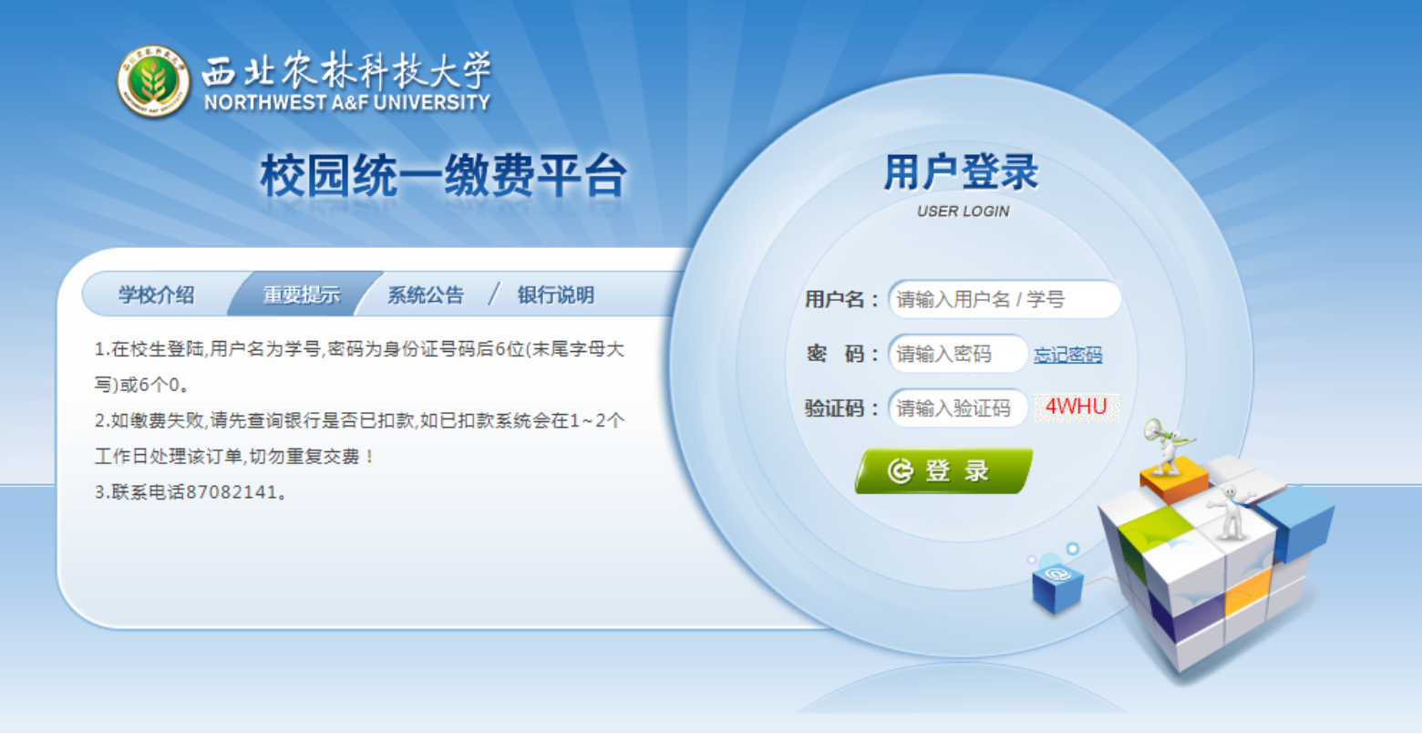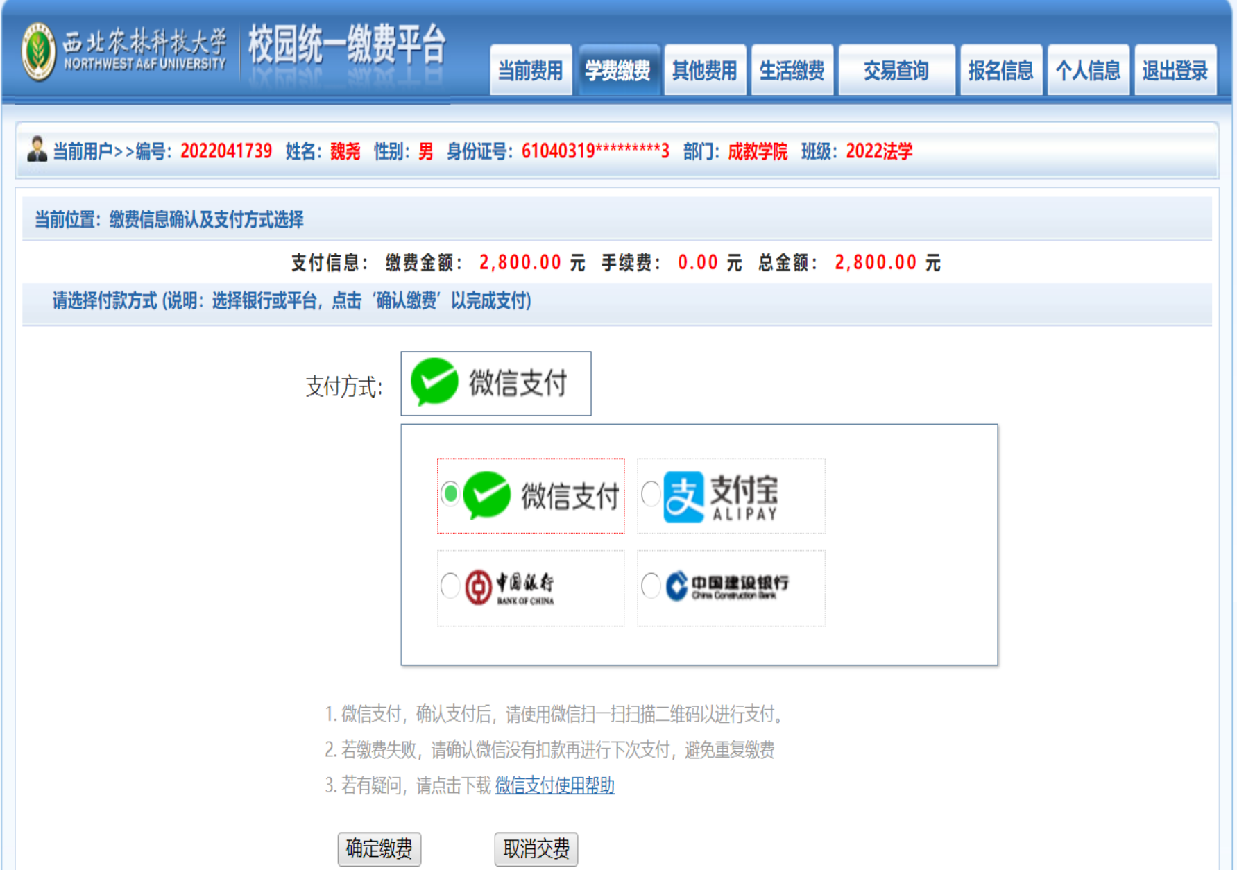 缴费地址:http://tyjfzfpt.nwsuaf.edu.cn