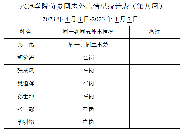 威廉williamhill体育负责同志外出情况统计表(第八周)