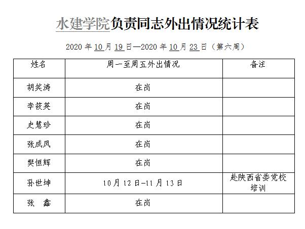 威廉williamhill体育负责同志外出情况统计表(第六周)