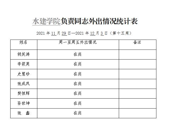 威廉williamhill体育负责同志外出情况统计表(第十五周)