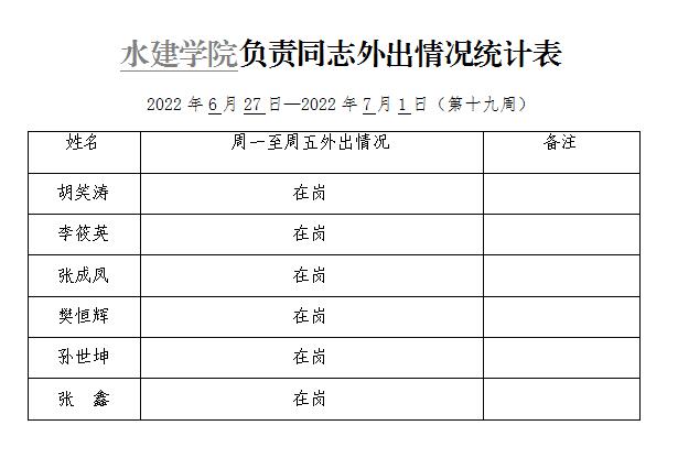 威廉williamhill体育负责同志外出情况统计表(第十九周)