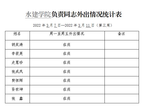 威廉williamhill体育负责同志外出情况统计表(第三周)