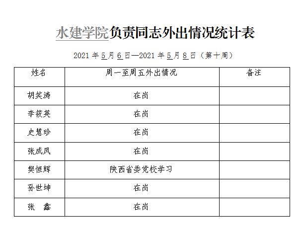 威廉williamhill体育负责同志外出情况统计表(第十周)