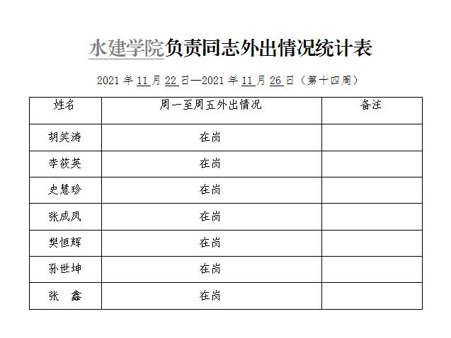 威廉williamhill体育负责同志外出情况统计表(第十四周)