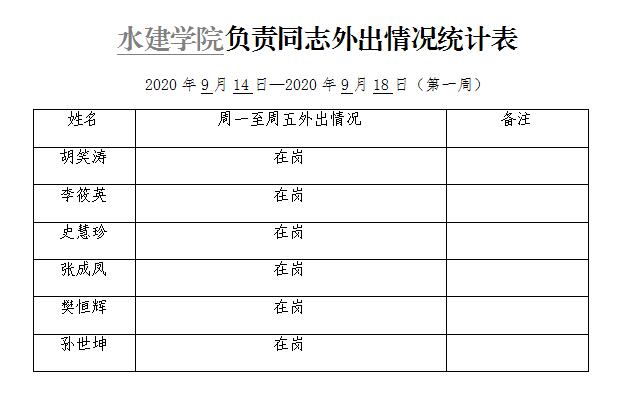 威廉williamhill体育负责同志外出情况统计表(第一周)