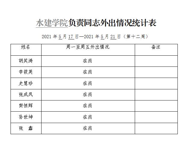 威廉williamhill体育负责同志外出情况统计表(第十二周)