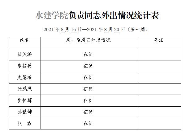 威廉williamhill体育负责同志外出情况统计表(第一周)