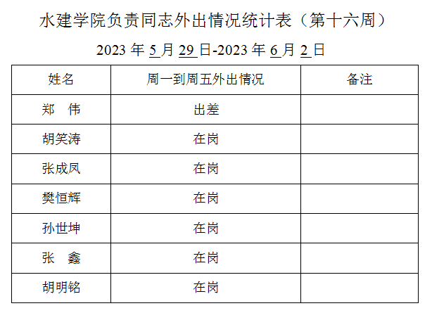 威廉williamhill体育负责同志外出情况统计表(第十六周)