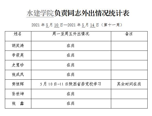 威廉williamhill体育负责同志外出情况统计表(第十一周)