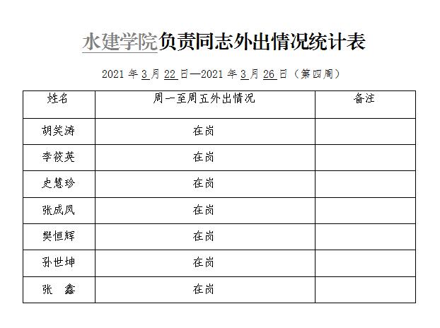 威廉williamhill体育负责同志外出情况统计表(第四周)