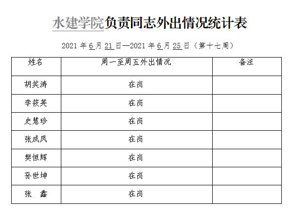 威廉williamhill体育负责同志外出情况统计表(第十七周)