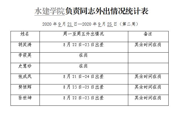 威廉williamhill体育负责同志外出情况统计表(第二周)