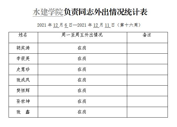 威廉williamhill体育负责同志外出情况统计表(第十六周)