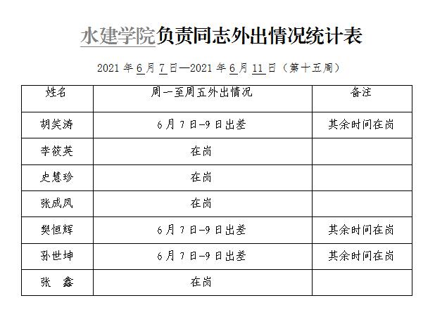 威廉williamhill体育负责同志外出情况统计表(第十五周)