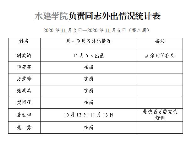 威廉williamhill体育负责同志外出情况统计表(第八周)