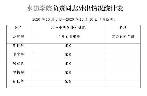 威廉williamhill体育负责同志外出情况统计表(第四周)