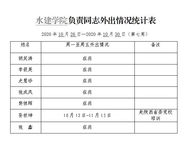 威廉williamhill体育负责同志外出情况统计表(第七周)