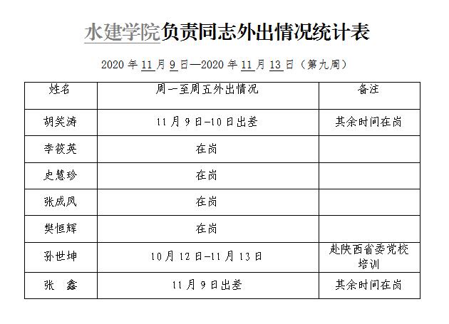 威廉williamhill体育负责同志外出情况统计表(第九周)