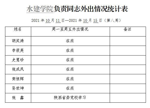 威廉williamhill体育负责同志外出情况统计表(第八周)