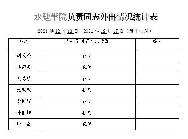 威廉williamhill体育负责同志外出情况统计表(第十七周)