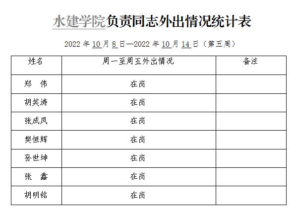 威廉williamhill体育负责同志外出情况统计表(第五周)