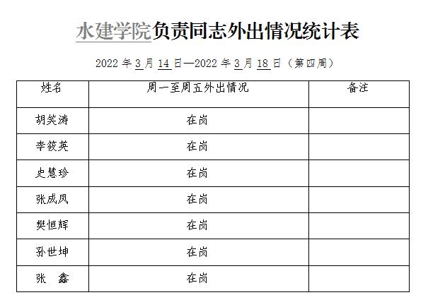 威廉williamhill体育负责同志外出情况统计表(第四周)