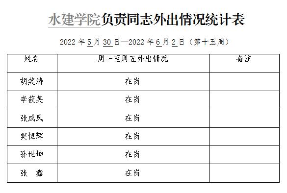 威廉williamhill体育负责同志外出情况统计表(第十五周)