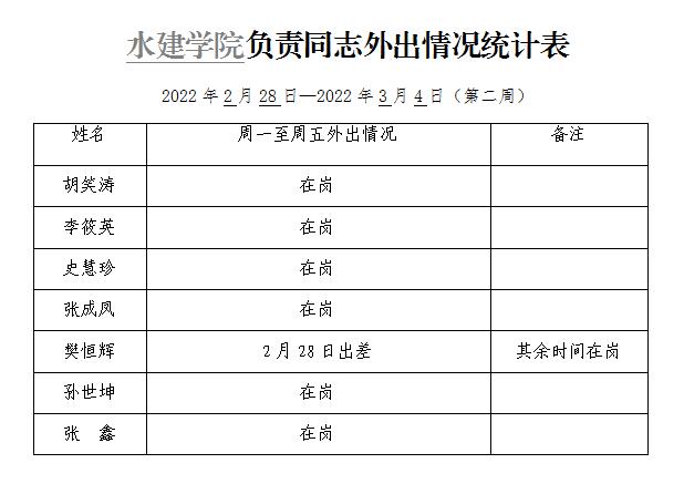威廉williamhill体育负责同志外出情况统计表(第二周)
