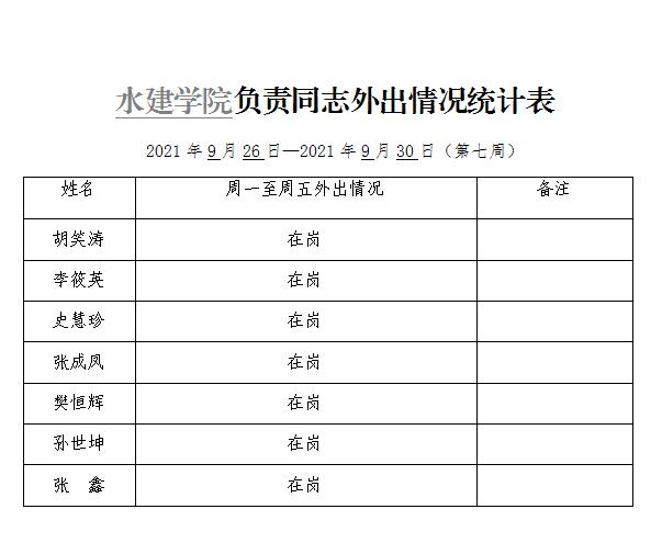 威廉williamhill体育负责同志外出情况统计表(第七周)