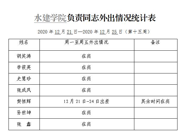 威廉williamhill体育负责同志外出情况统计表(第十五周)