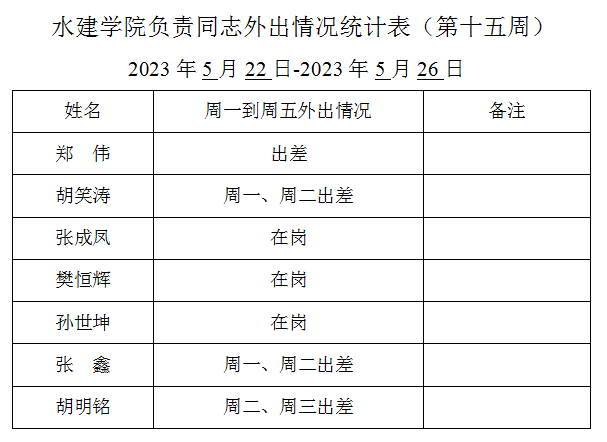 威廉williamhill体育负责同志外出情况统计表(第十五周)