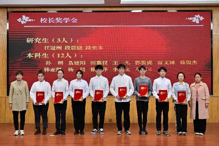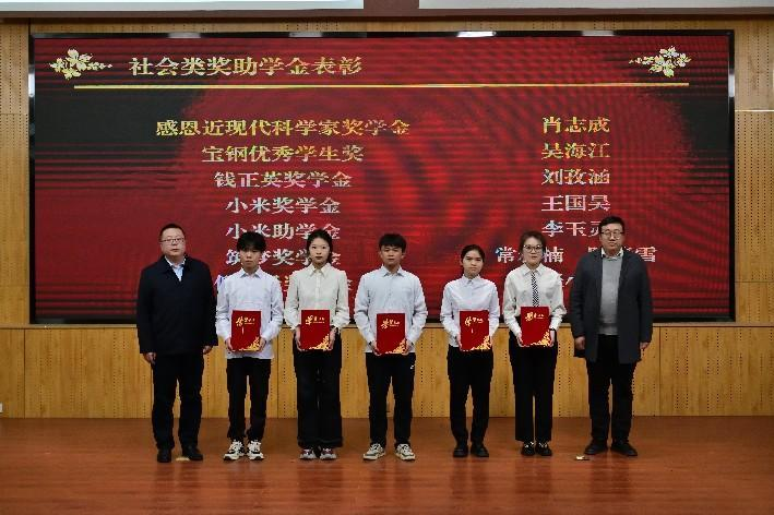 “蒙特助学金”资助企业代表、2000级农水专业员工、西安员工会水建分会副会长、陕西蒙特水利电力勘测设计有限公司总经理李大山先生、“新兴铸管奖学金”资助企业代表、新兴铸管股份有限公司西安销售分公司总经理尹海涛为获奖员工代表颁奖