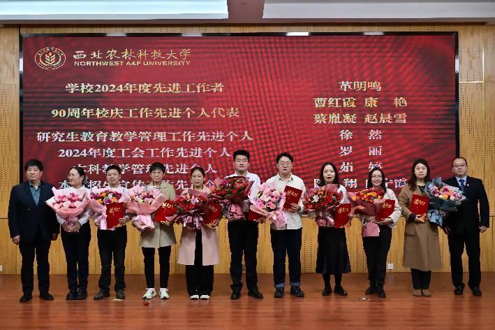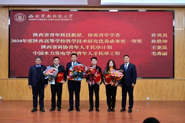 农业水利工程系主任曹红霞、水资源与环境工程系主任康艳为获奖员工代表颁奖