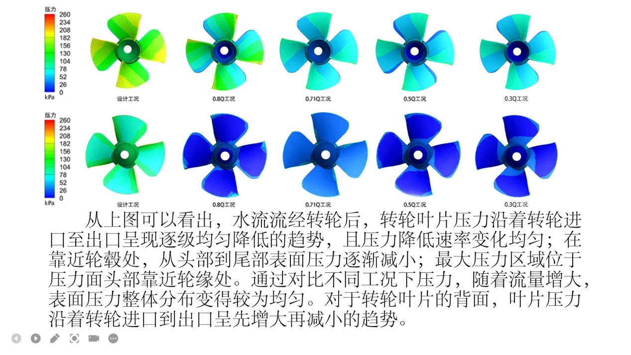 随后,22级本科生朱世杰与高铭成组展示了他们关于贯流式水轮机模型的研究成果,包括在五种不同工况下的压力云图及声功率分布云图,并对这些数据进行分析。刘乾坤与魏周瑞组则分享了他们的代码开发进度,并明确了接下来的任务目标,为其他参与者提供了实际操作的参考。