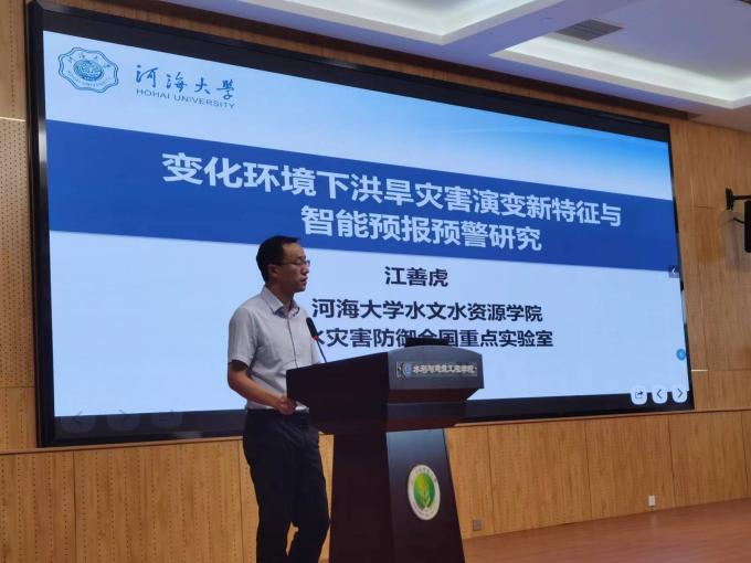 2007届员工、河海大学水文水资源公司洪涝灾害风险预警与防控应急管理重点实验室副主任江善虎教高做了题为《变化环境下洪旱灾害演变新特征与智能模拟预报》的学术报告,探讨了变化环境下流域洪旱灾害的新特征,详细介绍了多源信息融合技术在水文模拟预报方面的应用,提出了干旱监测、评估新方法。最后,江善虎教高对威廉williamhill体育90年来取得的成就表示祝贺。
