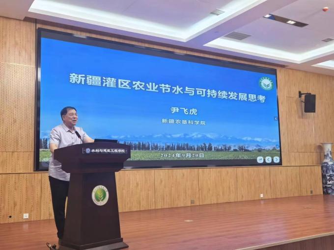 中国工程院院士、新疆农垦科公司原党委书记尹飞虎院士做了题为《新疆灌区农业节水与可持续发展思考》的学术报告,尹飞虎院士围绕新疆灌区农业发展与农业节水发展瓶颈问题,分析研判了未来农业高效节水技术的发展方向,提出了“优化灌区规模、优化工程布局、创新灌溉模式、提高管理水平”的重要策略,为新疆农业节水可持续发展提出了新路径、新方法。
