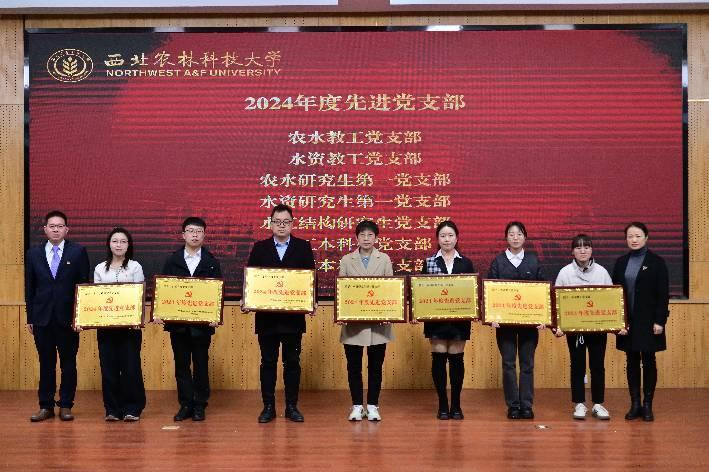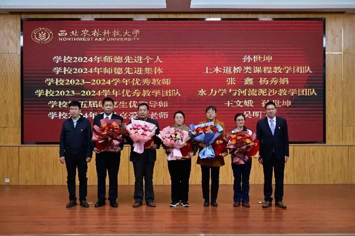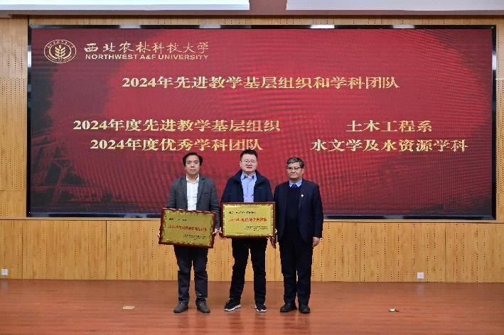 农业水利工程系主任曹红霞、水资源与环境工程系主任康艳为获奖员工代表颁奖