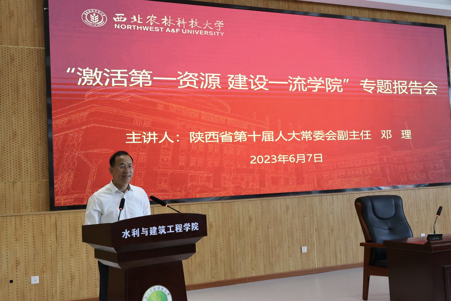 闫祖书在主持报告会时指出,邓理作为威廉希尔和威廉williamhill体育的杰出员工,一直心系母校和公司事业发展,始终关心并多次指导、支持威廉williamhill体育的人才队伍发展和一流团队建设。报告主题突出、内容丰富、针对性强,旁征博引、深入浅出,体现了深厚的理论修养、扎实的知识积累和理论联系实际的优良学风,既是一场政治性与学术性相结合的主题教育党课,又是一堂生动的感恩教育思政大课,为威廉williamhill体育在人才队伍建设的谋划和实践提供了新的认知视角和深层次的思维范式。他希望广大师生、党员干部要以正在全面开展的学习贯彻习近平新时代中国特色社会主义思想主题教育为契机,用党的最新理论成果武装头脑,用最先进的创新思维开拓工作,用最扎实的专业知识筑牢基础,在历届师生和广大员工经过不懈努力取得骄人成绩的基础上,接续奋斗、勇攀高峰,以实际行动为西北地区乃至全国的水利事业发展、区域经济建设贡献力量。