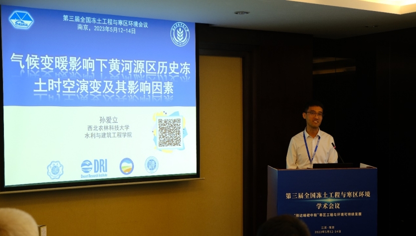 熊治华副教授在“寒区基础设施与环境相互作用”专题中做了题为“高地震烈度寒区桥梁韧性评价”的学术报告;孙爱立副教授在“北极冻土变化与工程建设”专题中做了题为“气候变暖影响下黄河源区历史冻土时空演变及其影响因素”的学术报告;王正中教授指导的博士生李瀚翔在“研究生论坛”分会场做了“基于周向冻缩变形协调的衬砌渠道防冻胀纵缝计算方法”报告。
